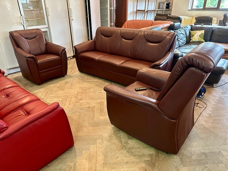 885 Kožená sedací souprava sedačka 3+1+1 el. poloh. křeslo