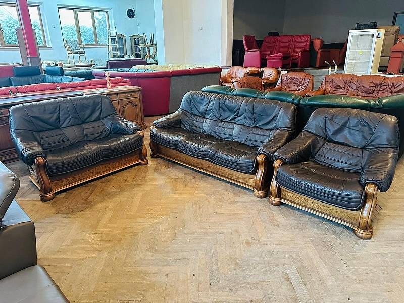 609 Rustikální kožená sedací souprava sedačka 3+2+1 masiv