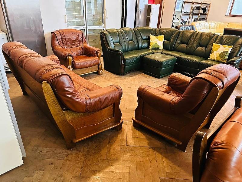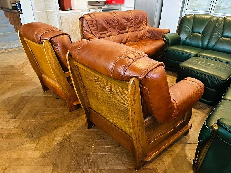 557 Rustikální kožená sedací souprava sedačka 3+1+1 masiv