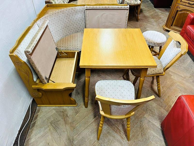 | Lavice má frézované stylové ozdobné drážky a 2 úložné prostory. Stůl je rozkládací. Lavice i stůl se dají rozšroubovat rozložit. Rozměry lavice: Hloubka 131 cm. Šířka 131 cm. Výška 86 cm.