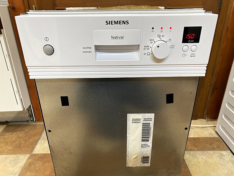 | Značková vestavná myčka v bílém provedení. Až na 9 sad nádobí. Displej. Zobrazení času do konce mytí na displeji. Možnost odloženého startu mytí. 5 mycích programů: Intenzivní 70°C, AUTO 45°C-65°C (myčka si sama zvolí mycí program podle znečištění vody), ECO 50°C, Zkrácené mytí 45°C, Předmytí (oplach). Funkce VarioSpeed (možnost zkrácení mytí). Mycí ramena ve tvaru vlny (vyšší účinnost mytí). Kontrolky nedostatku soli a leštidla. Aquasensor. Aquastop. Výškově nastavitelný horní koš. Zamačkávací tlačítko programátoru - pojistka proti dětem. Hloubka 57,5 cm. Šířka 44,7 cm. Výška 81 cm regulovatelná nožičkama.