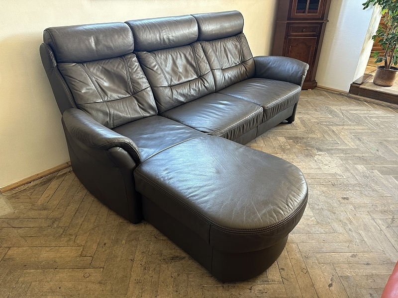 | Hloubka 173 cm. Šířka 230 cm. Výška 105 cm. Vysoká sedačka. Za hlavami 3 stavitelné opěrky hlavy. Barva tmavě hnědá. Pravá kůže. Použité zboží. Možno dovézt. 17990 Kč. Volat předem na tel.: 777 647 827. |
