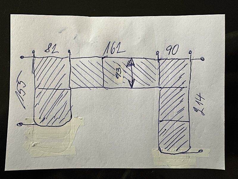 | Hloubka 212/155 cm. Šířka 328 cm. Výška 96 cm.