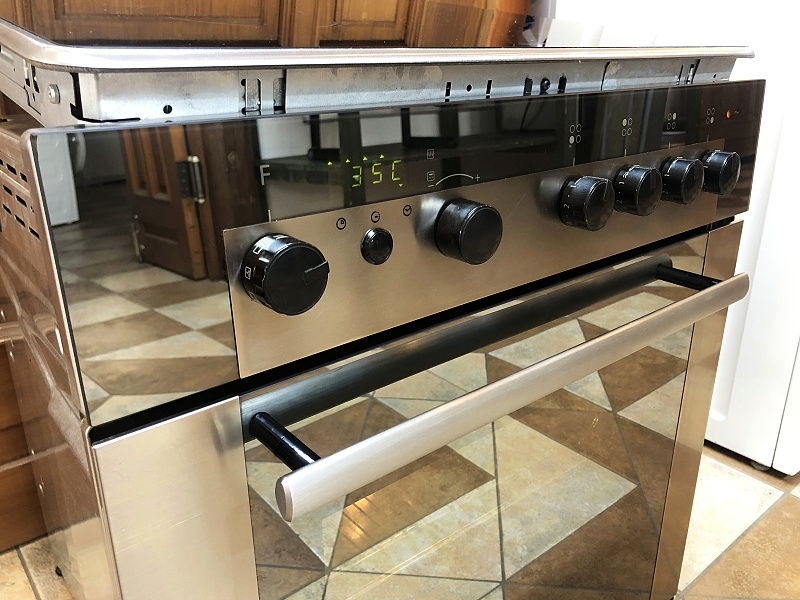 Multifunkční nerezová horkovzdušná trouba s kruhovou spirálou u ventilátoru + klasické pečení horní a dolní spirálou + gril + rozmrazování (4-spirálová trouba). Displej k programování pečení + minutovník + hodiny. Digitální termostat - číslicové nastavení a zobrazení teploty v troubě. Funkce PYROLISE - možnost pyrolitického čištění vnitřku trouby. Možnost zvětšení 2 ploten do tvaru kruhu a oválu podle velikosti hrnce. 4 červené kontrolky zbytkového tepla ploten. Elektronické spínače ploten. Kouřové sklo. Ochlazovací ventilátor meziprostoru trouby. Připojení na 220 V nebo 380 V (230 V /400 V). Použitá. Čistý. Plně funkční. Předvedu.