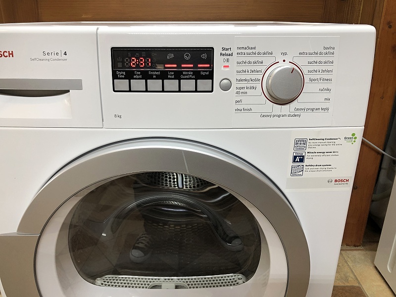 Energetická třída A++. Popisy na panelu v češtině (CZ). Až na 8 kg prádla. LED displej. Zobrazení času do konce sušení na displeji. Možnost odloženého startu sušení. 15 programů. Program pro sportovní oblečení, košile, nebo super krátký 40 minut. Jemné sušení - systém šetrného sušení Sensitive Drying zajistí, že vaše prádlo bude vysušeno velice jemně a důkladně. Ochrana proti zmačkání – lze prodloužit o 60 minut. Sušení podle programů nebo časové sušení. SelfCleaningCondenser – několikanásobný automatický proplach kondenzátoru během fáze sušení. Vnitřní LED osvětlení bubnu. Zvukový signál. Hloubka 63 cm. Šířka 59,8 cm. Výška 84,5 cm regulovatelná nožičkama.