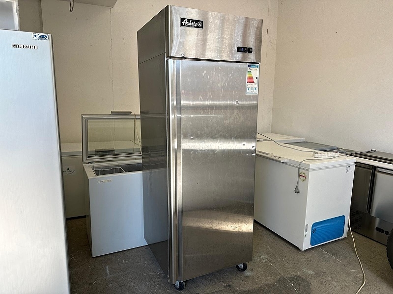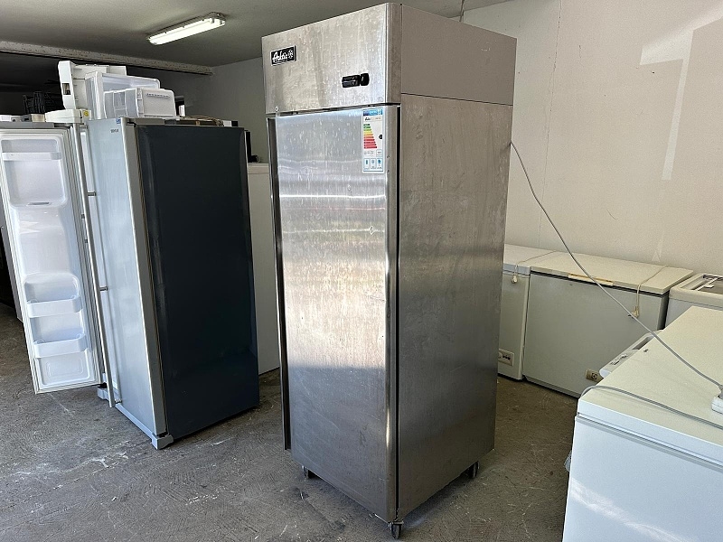 | VHODNÁ I NA VELKÉ PŘEPRAVKY viz foto. Velká profesionální značková gastro chladnice. Objem 670 litrů. Velká chladící schopnost - rychle vychladí vnitřní prostor. Displej. Nastavení a zobrazení vnitřní teploty na displeji. Kastle a vnitřek z nerezu. Systém chlazení dynamický - vnitřní ventilátor. Vnitřní osvětlení. Samozavírací dveře. Nosnost polic 40 kg. Hloubka 81 cm. Šířka 73 cm. Výška 206 cm. Hmotnost 120 kg. Pojízdná na kolečkách s brzdou. Použitá. Čistá. Plně funkční. Předvedu. Možno dovézt.