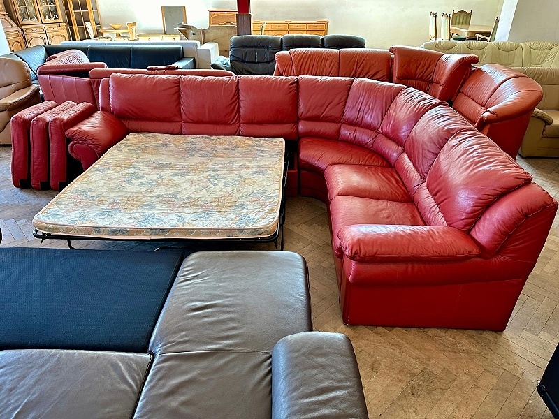 356 Kožená rozkládací rohová sedací souprava sedačka