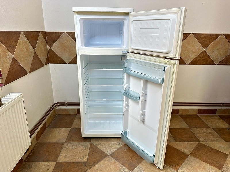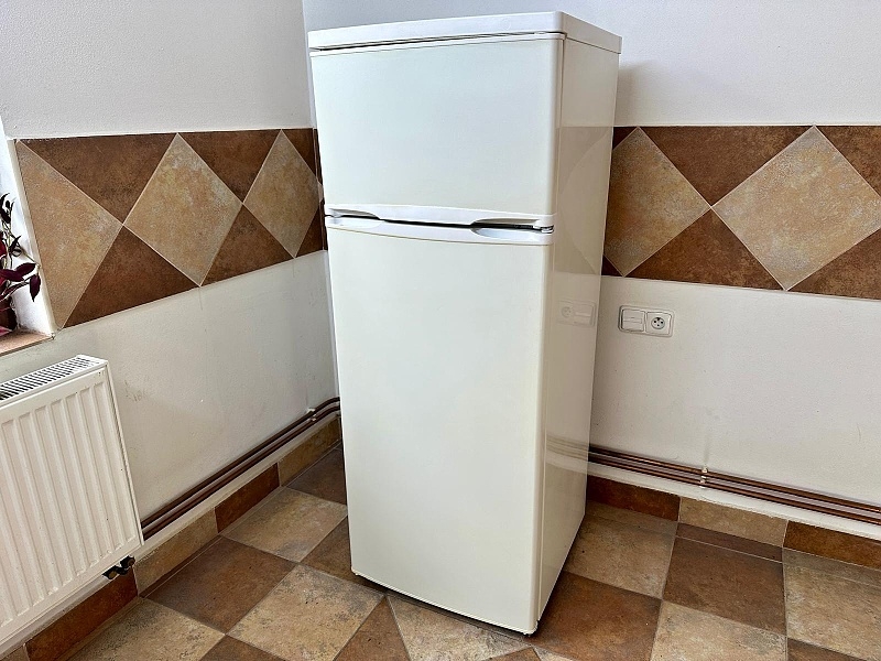 | Objem chladnice asi tak 220 litrů - automatické odtávání. Objem mrazáku asi tak 50 litrů. Možná záměny dveří na opačné otevírání. Hloubka 57 cm. Šířka 54,7 cm. Výška 143,5 cm.