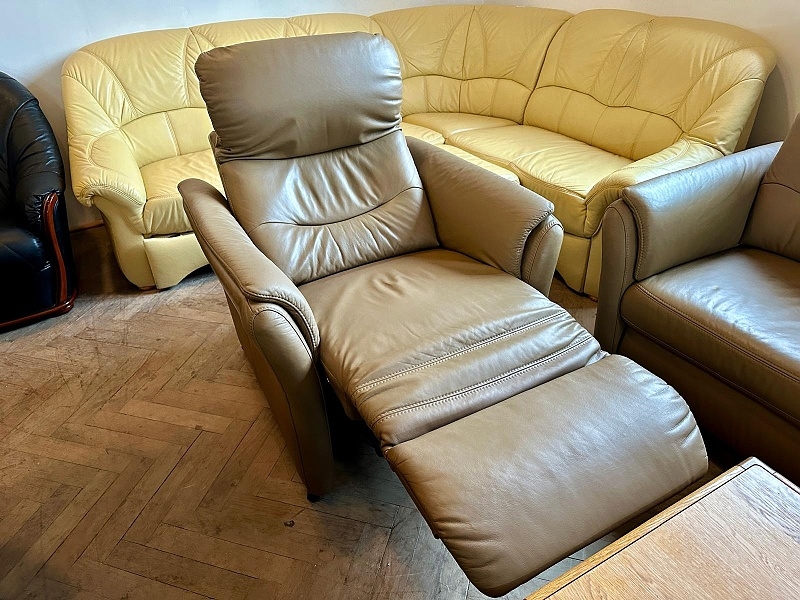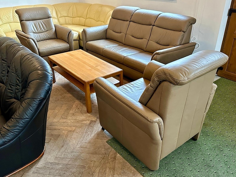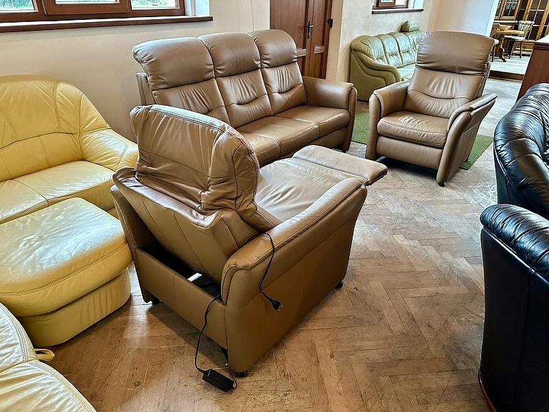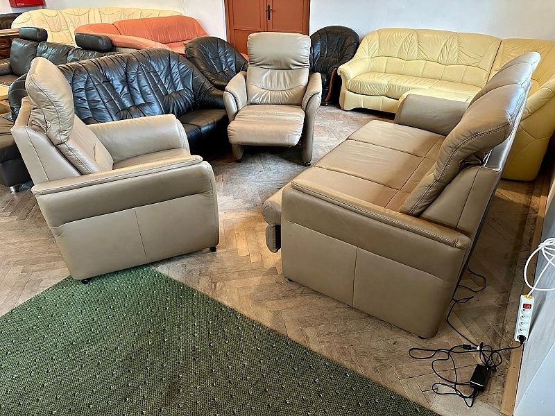729 Kožená sedací souprava sedačka 3+1+1 s el. polohováním