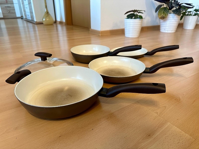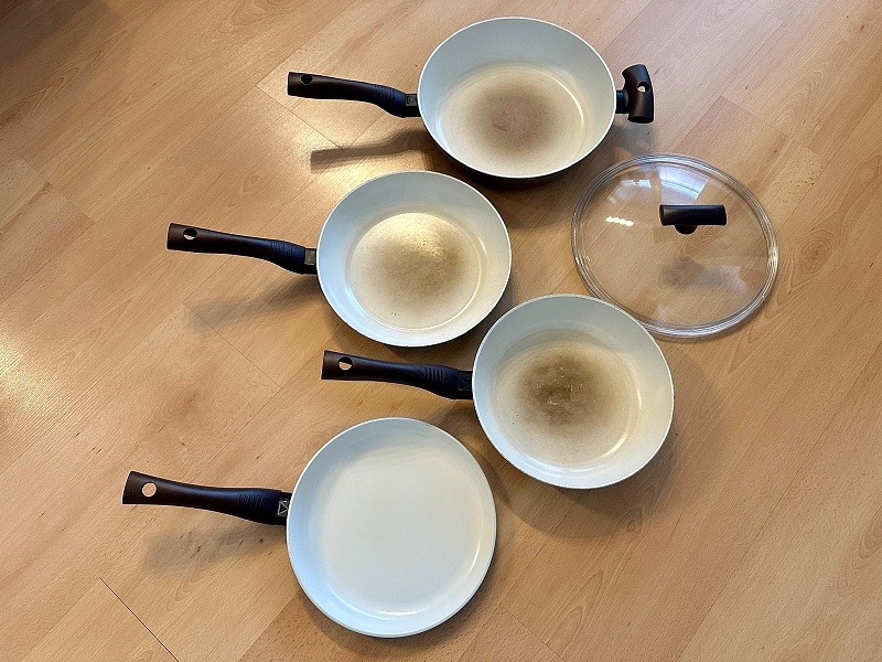 | 4 pánve viz foto. Vhodné na kovové el. plotny, sklokeramické el. plotny, na el. indukci, na plyn. Vnější průměr 29 cm se skleněnou pokličkou. Vnější průměr 27 cm. Vnější průměr 25 cm. Vnější průměr 25 cm. Měřeno zhora. Použité, ještě poslouží. Možno dovézt nebo zaslat. 990 Kč. Tel.: 777 647 827. |