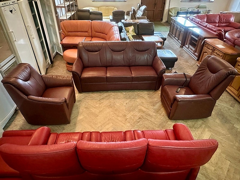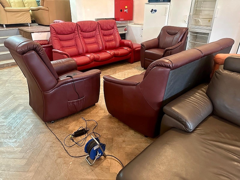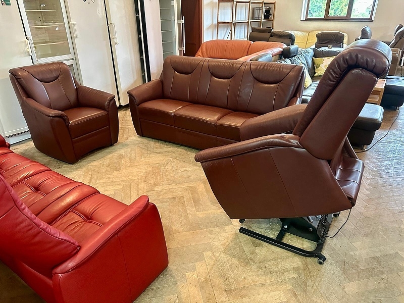 885 Kožená sedací souprava sedačka 3+1+1 el. poloh. křeslo