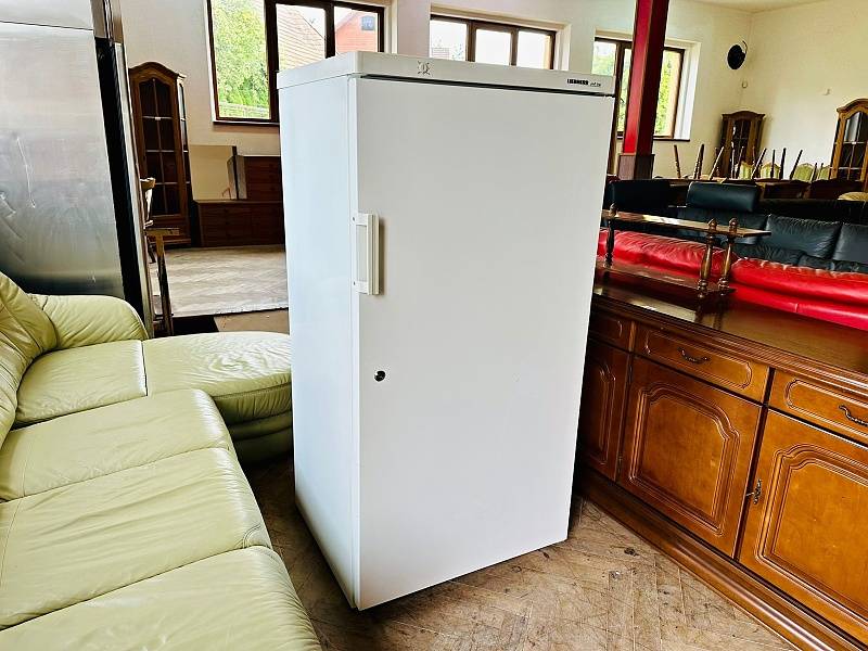 Velká profesionální značková chladnice LIEBHERR. Velká chladící schopnost - rychle vychladí celý prostor. Objem 500 litrů. Automatické odtávání. Možná záměna dveří na opačné otevírání. Nosnost polic 60 kg. Hloubka polic 50,5 cm. Vnitřní šířka 65,2 cm. Vnější rozměry: Hloubka 70 cm. Šířka 75 cm. Výška 151 cm. Hmotnost 73 kg.