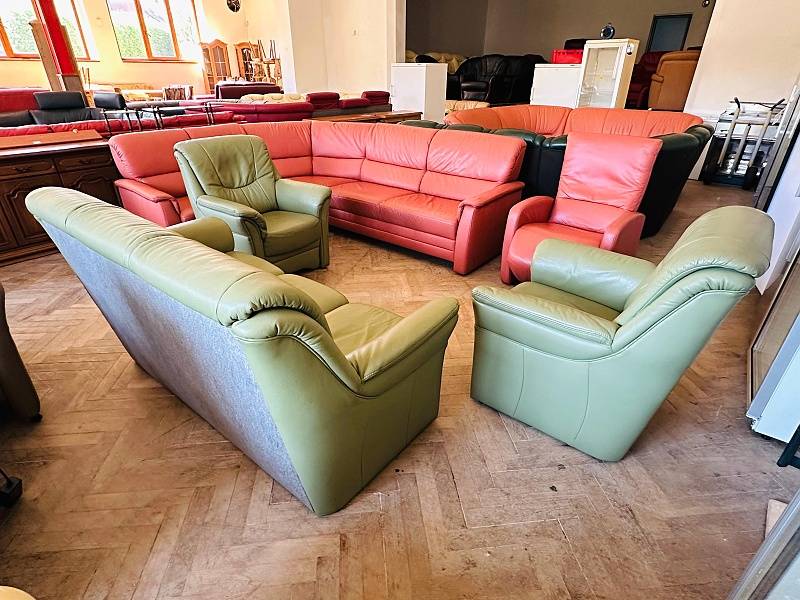 965 Kožená sedací souprava sedačka 3+1+1 sv. zelená