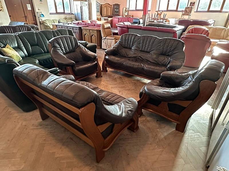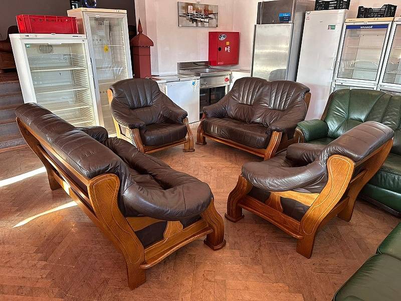 629 Rustikální kožená sedací souprava sedačka 3+2+1+1 masiv